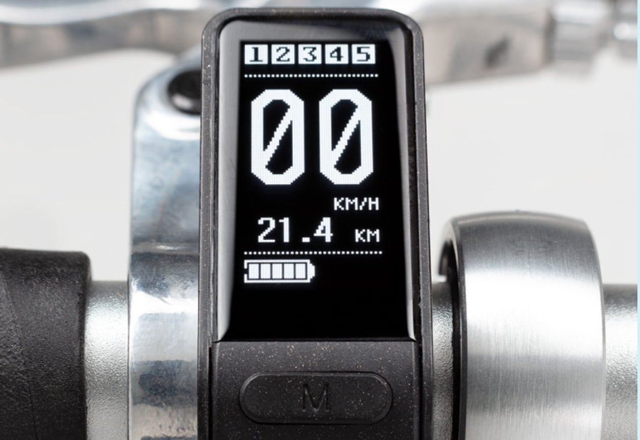 | Display | OLED. Provides power assist level, speed, mileage, battery level, and stats. |